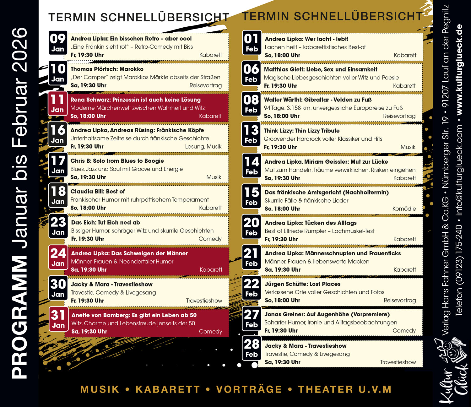 KulturGlück im PZ-Kulturraum präsentiert gute Unterhaltung mit Kabarett, Konzerten, Theater, Comedy, Reisevorträge u.v.m.